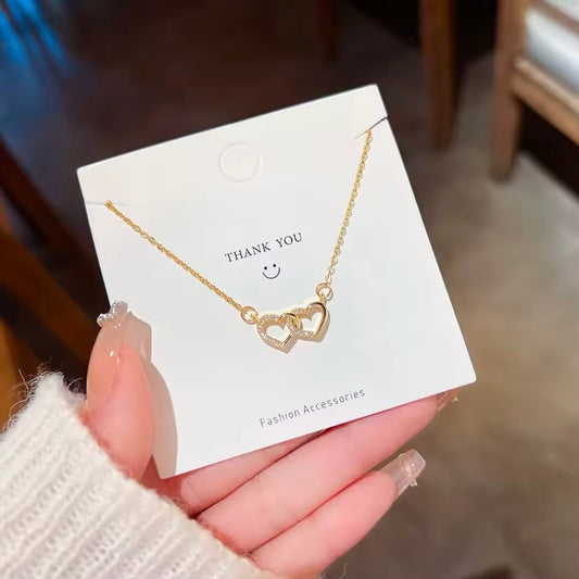 Romantische Dubbel Hart RVS Ketting met Zirkoon | gratis verzending