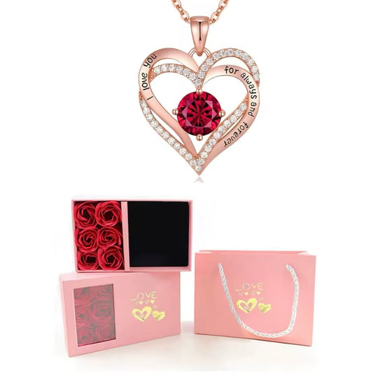 Taal van de Liefde - Hart Projectie Ketting & Roos Geschenkdoos