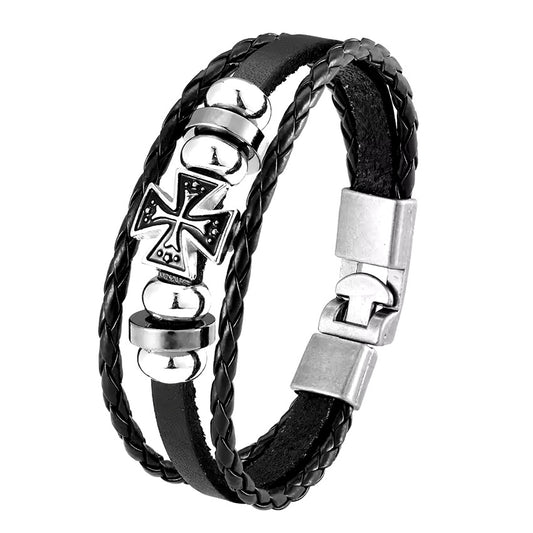Valoré Retro Lederen Armband - Kruisvaardersstijl