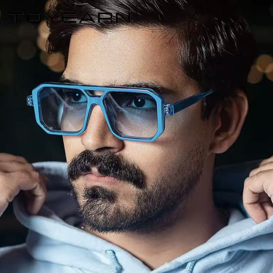 Blue Vintage Brand Designer Square Sunglasses Women For Men Fashion Popular Luxury