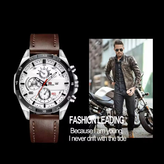 Top Herenhorloge Sportstijl – 46 mm Groot Leer Quartz Horloge | Luxe Racestijl met Kalenderfunctie