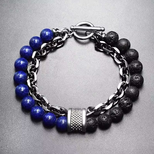 NAIQUBE Rvs Stone Bead Armband Voor Mannen 1+1 GRATIS