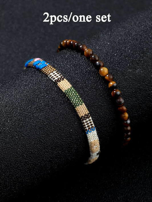 Titan Styleâą 2 Heren Armbanden â Handgemaakt met Natuurlijke Kralen en Geweven Design
