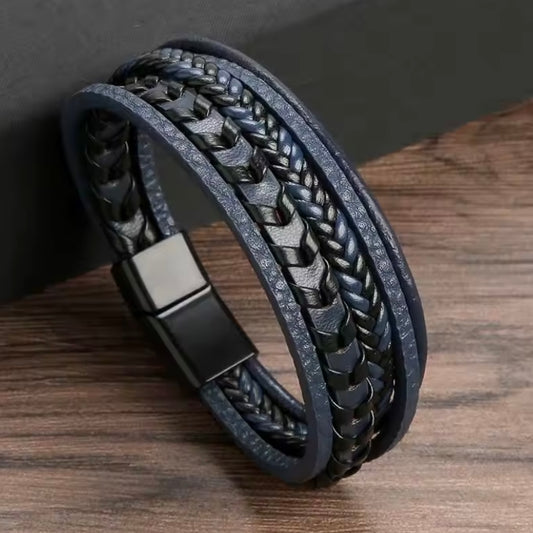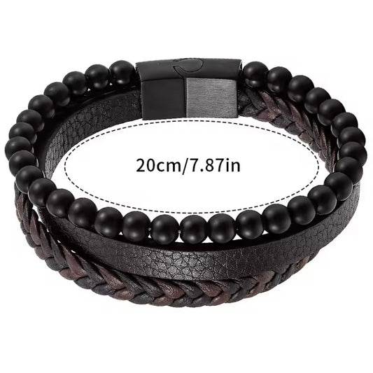 Magnetische Charme â Meerlaagse Herenarmband van Vintage Leer