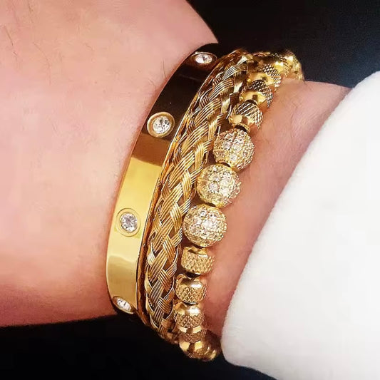 Royal SparkleÂź 3-delig Set Luxe 8Mm Cz Ball Charme Man Armband Kristal Rvs Vaderdag