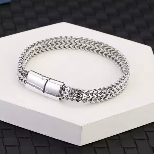 Heren Dikke Byzantijnse Armband | Retro Grijs 8 mm Roestvrij Staal | Gevlochten Schakelarmband