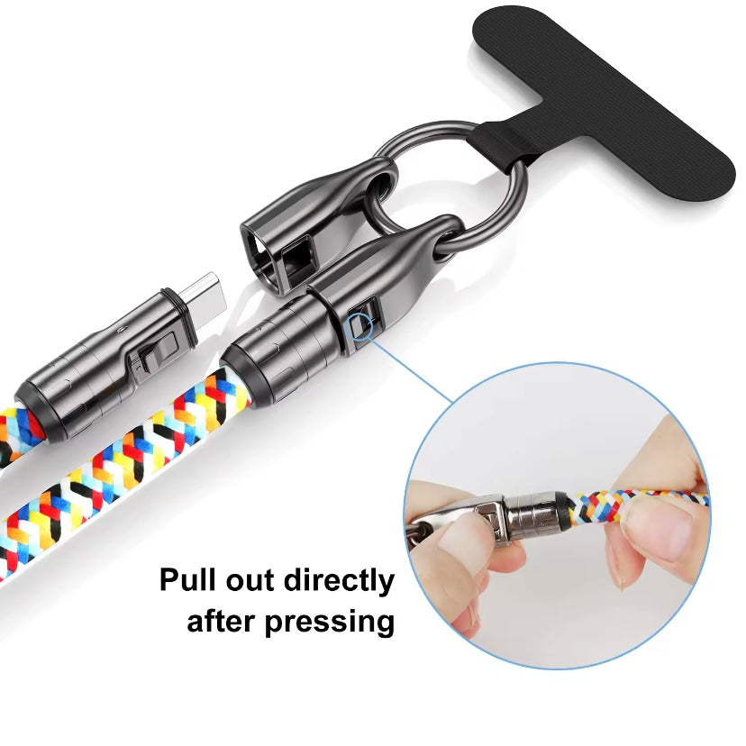 Maak kennis met het ultieme 2-in-1 gadget: een crossbody telefoonkoord van 1.2 meter mét geïntegreerde 240W Type-C snellaadkabel. Ideaal voor onderweg, festivals, reizen of gewoon dagelijks gebruik.