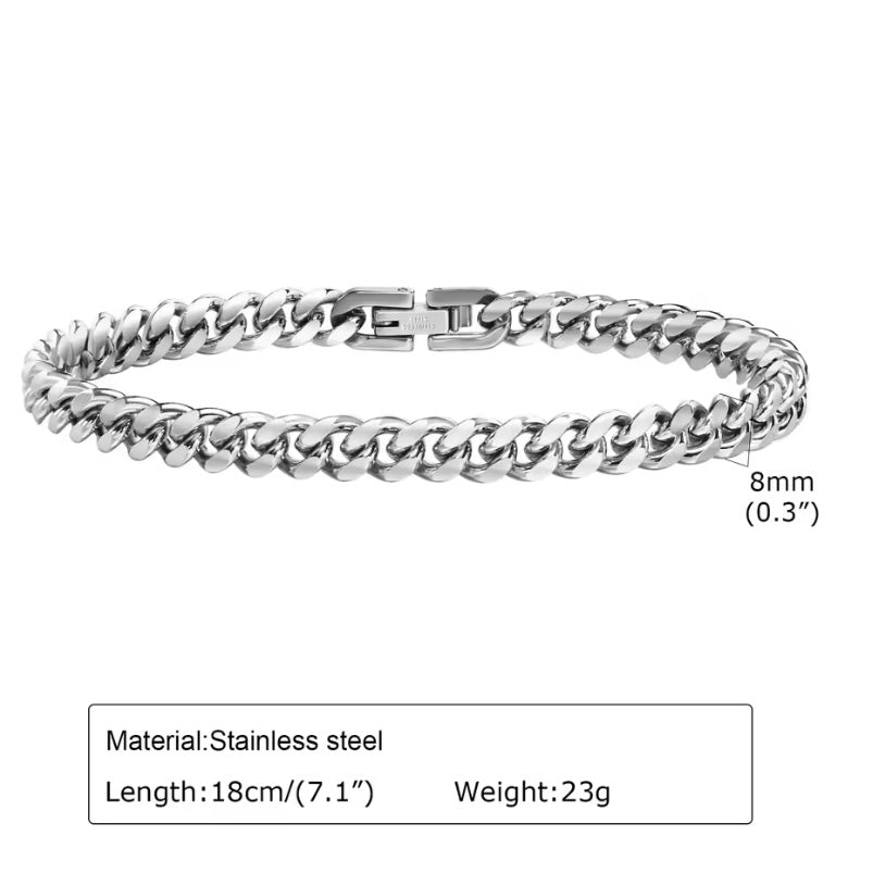 Ontdek de tijdloze stijl van de Cubaanse ketting armband – een krachtige combinatie van robuust design en verfijnde elegantie. Deze unisex armbanden, verkrijgbaar in 18, 20 en 22 cm, zijn gemaakt van massief roestvrij staal en bieden een perfecte pasvorm voor elke pols.