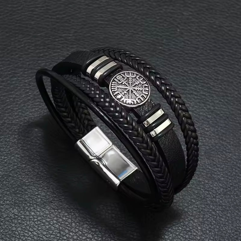 Gevlochten leer, het iconische kompas en duivelse oog symbolen voor een krachtige en veelzijdige uitstraling.