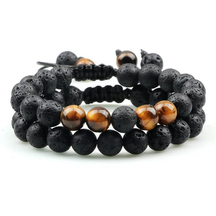 De combinatie van de aardse lava kralen en de beschermende eigenschappen van tijgeroog biedt spirituele balans en rust.