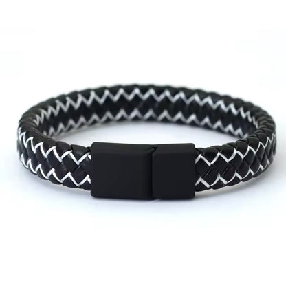 Maak een krachtig fashion statement met de Hiphop Heren Lederen Armband. Deze armband is gemaakt van hoogwaardig zwart leer en voorzien van een sterke magnetische sluiting, waardoor hij niet alleen stijlvol, maar ook praktisch is. Het afneembare en stoere design maakt dit accessoire perfect voor zowel hiphop- als punkliefhebbers.