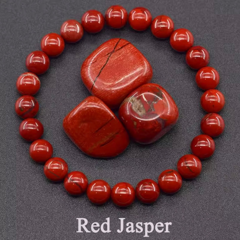 Deze set bestaat uit twee handgemaakte, verstelbare kralenarmbanden — één wit en één rood.