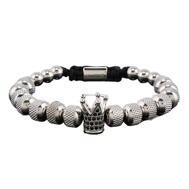 De kroon bedels stralen koninklijke elegantie uit, terwijl de roestvrijstalen kralen een vleugje luxe toevoegen aan de armband.