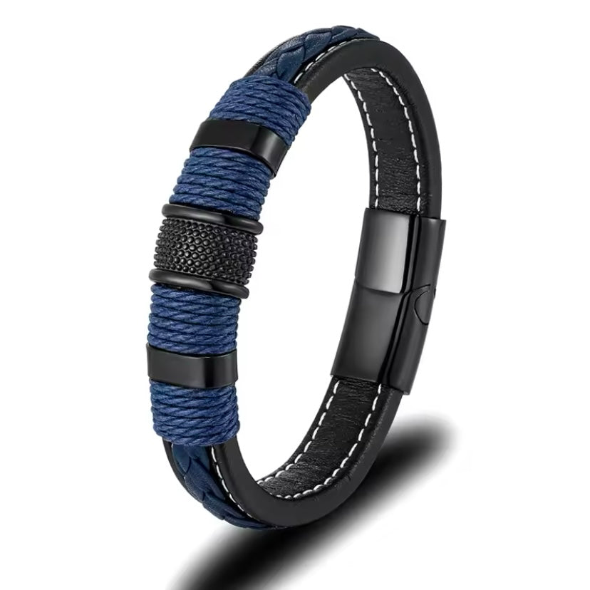 Ontdek tijdloze mannelijkheid met de Mkendn Punk Gevlochten Leren Armband, een accessoire dat kracht en verfijning naadloos combineert. Gemaakt van echt blauw leder en voorzien van een zwarte roestvrijstalen magnetische sluiting, is deze armband het perfecte symbool van stijl en duurzaamheid.