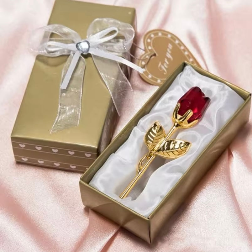 Deze prachtige kristal glas roos kunstbloem gouden staaf roos straalt eeuwige schoonheid en elegantie uit.