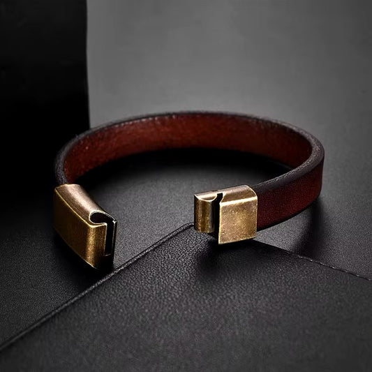 Vintage Bruin Lederen Mannen Armband Rvs Magnetische Sluiting