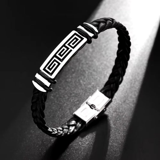 Klassiekea Minimalistische Stijl Handgeweven Heren Lederen Armband Geometrische