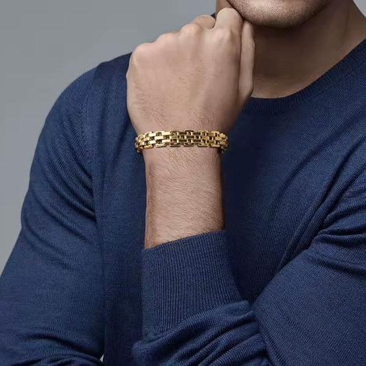 Dikke Mannelijke Horlogeband Schakelarmband – 11mm Roestvrij Staal, Handgemaakt