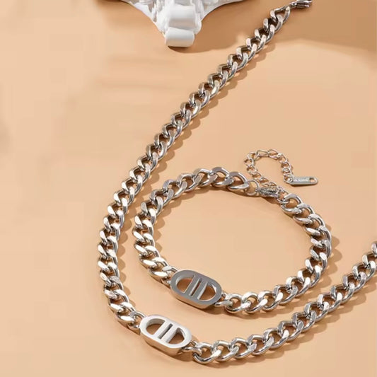 Roestvrij Stalen Cubaanse Ketting & Armband voor Mannen en Vrouwen - Hiphop/Kpop Stijl en Topkwaliteit