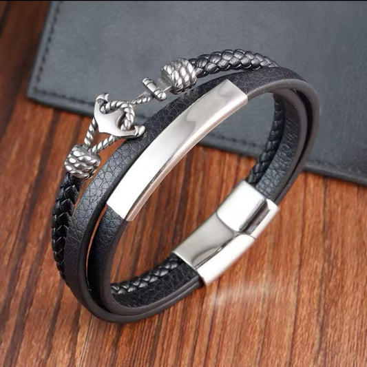 AnchorSteel™ Moderne Lederen Armband – 21 cm