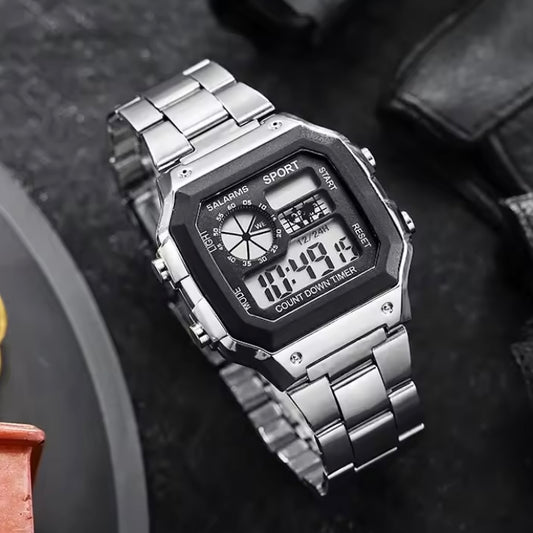 Luxe Roestvrijstalen Sporthorloge voor Mannen | Militaire Digitale LED Klok