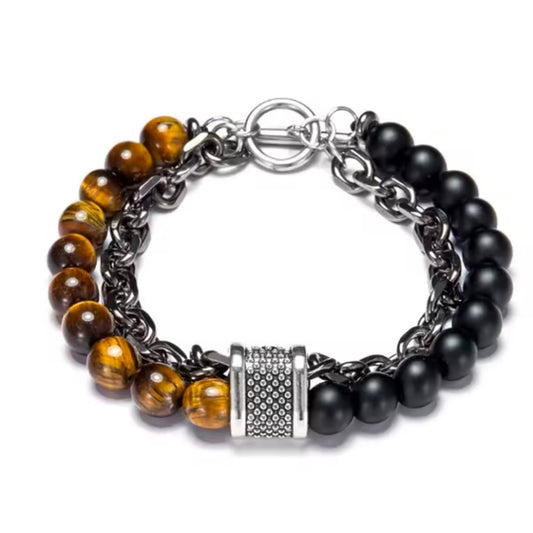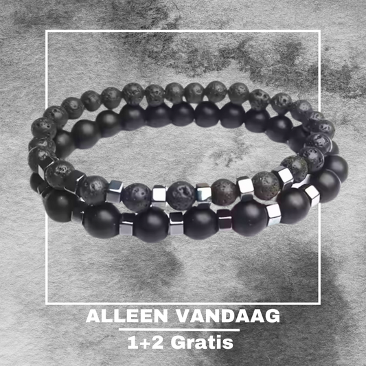 Unieke Mannen Armband Set â Zwarte Onyx & Hematiet Kralen, Healing Braclet met Luxe Zirkonia