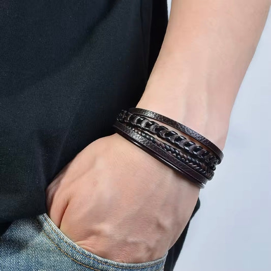 Vandroâą Gevlochten Leren Armband voor Mannen â Bijoux Homme Stijl