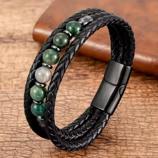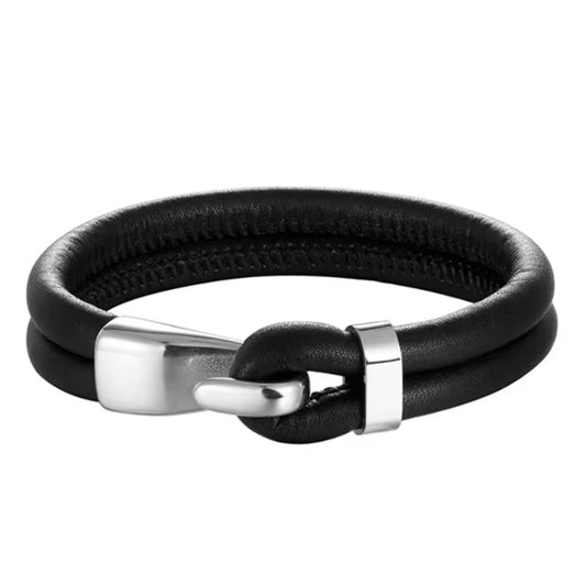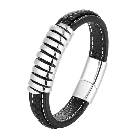Charm Vintage Multilayer Zwart-Rvs Lederen Armband voor Mannen - Zakelijke Stijl en Formele Gelegenheden
