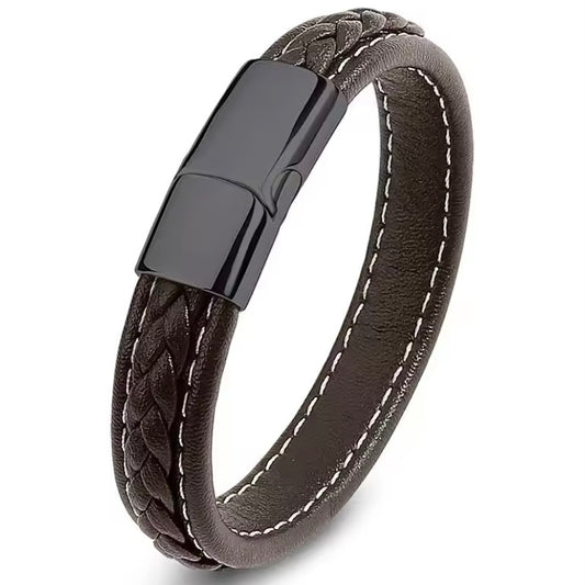 Klassieke herenarmband â gevlochten leer met roestvrijstalen details