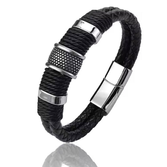 Luxe Handgeweven Leren Herenarmbanden & Roestvrij Staal