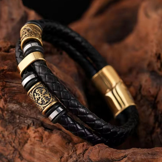 Trendy Meerlaags Leren Armband met Nordic Runes | Odin's Lucky Bead - Stoer & Mystiek!
