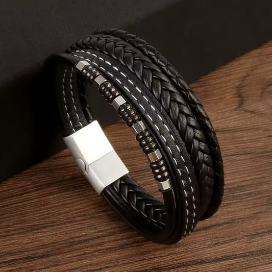 Luxe Leren Herenarmbanden â Handgeweven Leer & Roestvrij Staal