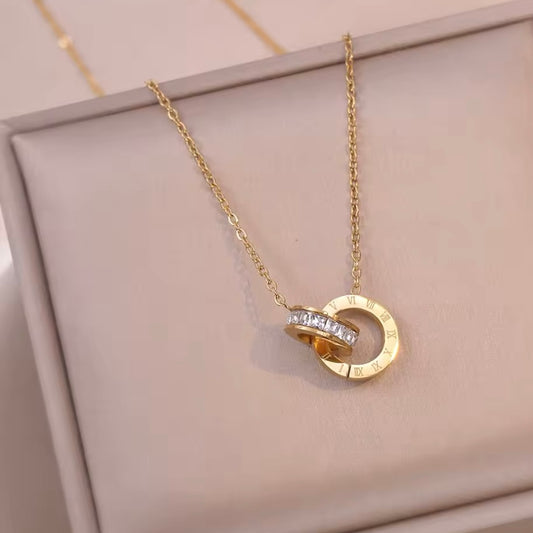 Chique Kristallen Cirkel Choker met Romeinse Cijfers â Luxe Gouden en Zilveren Rose Hanger Ketting voor Vrouwen