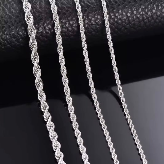 Zilverkleurige touw ketting/armband voor mannen breedte 2 mm/3 mm/4 mm/5 mm/6 mm
