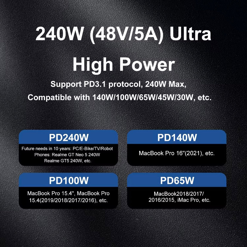 Multifunctioneel Telefoonkoord met 240W Snellaadkabel – 1.2M Type-C