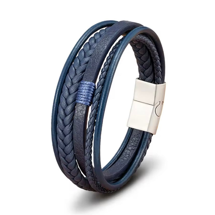 Deze leren herenarmband combineert robuust design met hoogwaardige materialen. Gemaakt van echt leer en afgewerkt met roestvrijstalen details, is dit een accessoire dat kracht en stijl uitstraalt.
