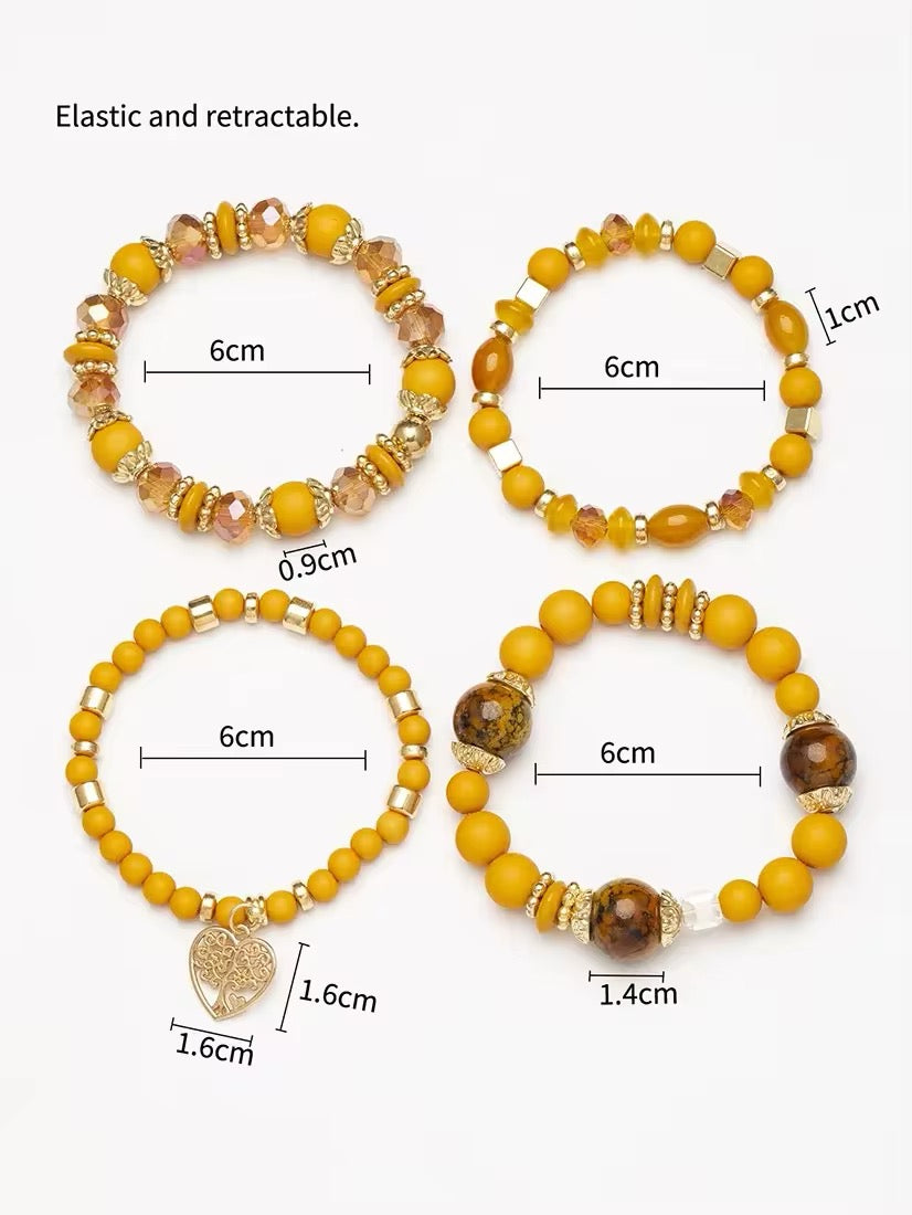 De armband set bestaat uit 4 stuks en is ontworpen met opvallende details zoals een boom van het leven en hart motief.