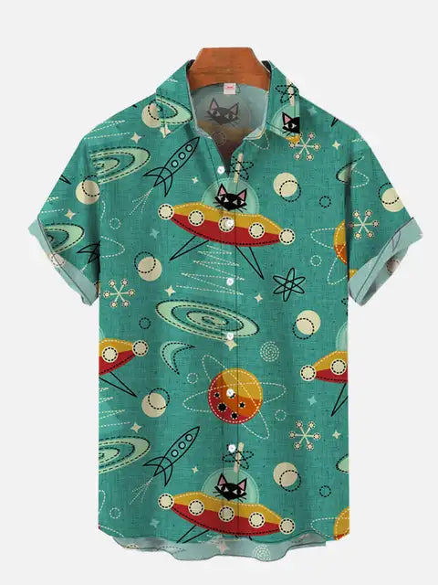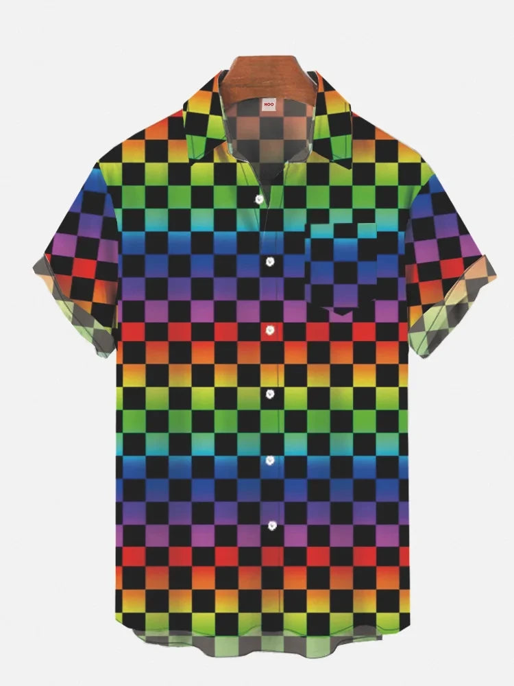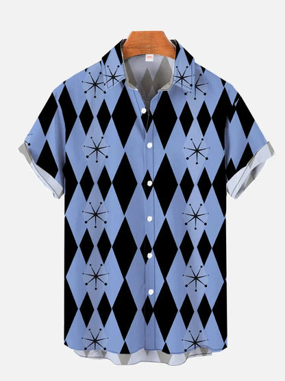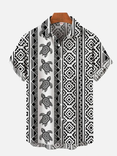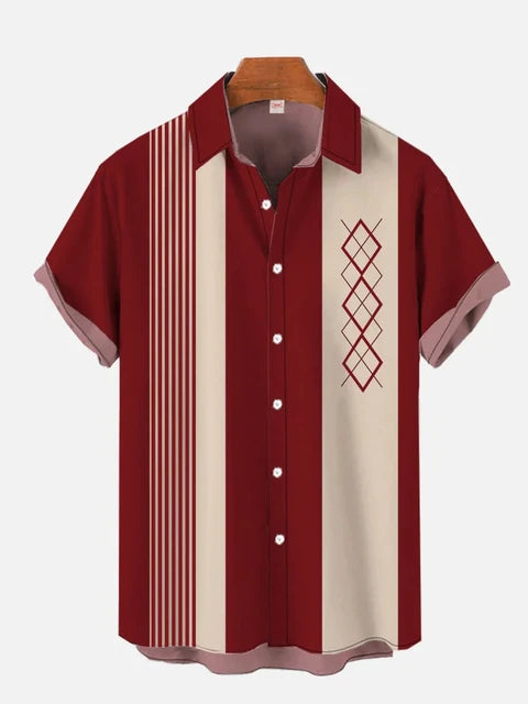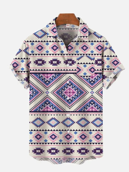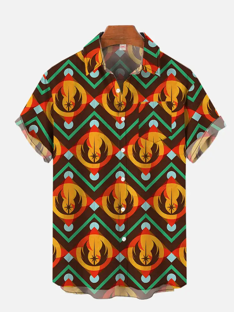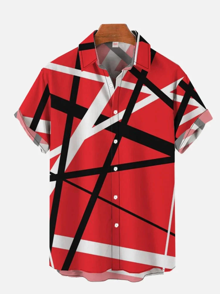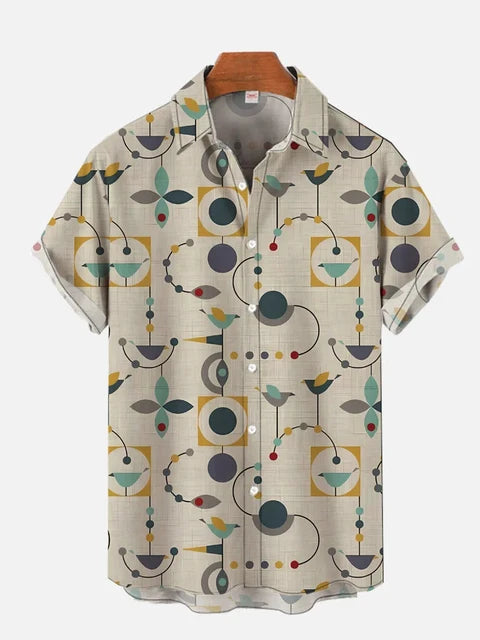 Dit moderne heren T-shirt met korte mouwen is voorzien van geometrische kunst in een kleurrijk en abstract portretontwerp.