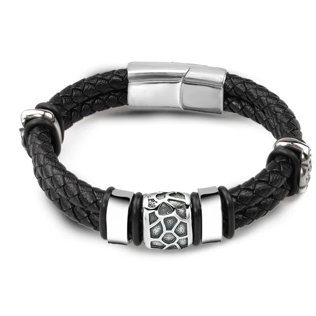 Deze Bruin Luxe 316L Rvs Onregelmatig Gebarsten Man Armband is gemaakt van echt gevlochten leer en roestvrij staal (316L).