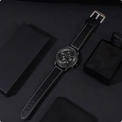 Laat je persoonlijke stijl schitteren met onze TimelessElegance™ Stijlvolle Heren Horloge en Armbanden Set.
