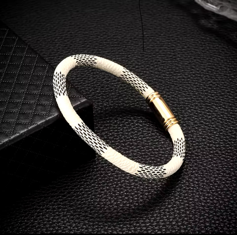 Deze moderne armband is gemaakt van hoogwaardig synthetisch materiaal, ideaal voor iedereen die kiest voor diervriendelijke en vegan accessoires.