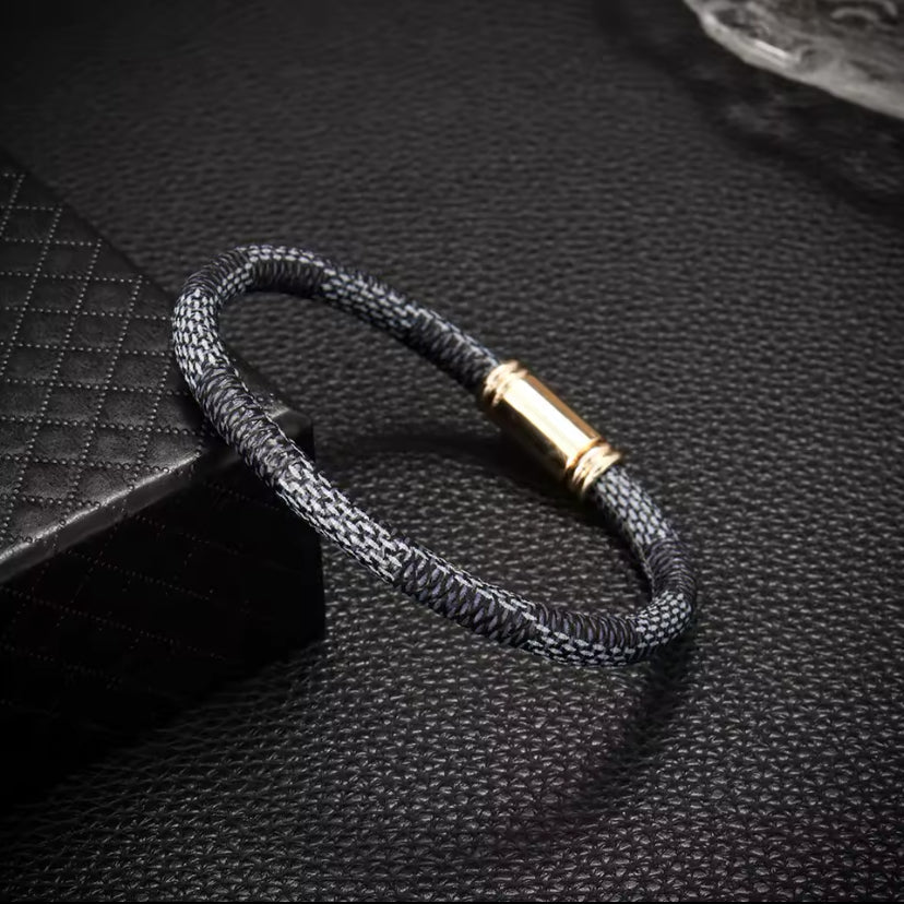Voeg een vleugje stijl en duurzaamheid toe aan je look met deze elegante gestreepte armband.