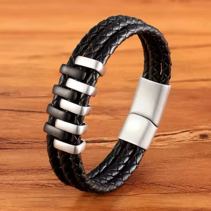 Luxe Handgeweven Leren Herenarmbanden & Roestvrij Staal
