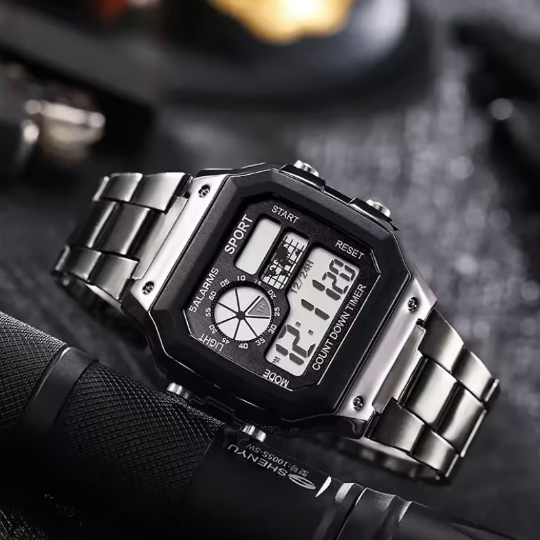 Ons horloge biedt niet alleen een stijlvolle uitstraling, maar ook de functionaliteit die je nodig hebt om je dagelijkse activiteiten bij te houden. De roestvrijstalen band en waterdichte eigenschappen zorgen ervoor dat je altijd klaar bent voor actie, terwijl de digitale LED-display je voorziet van alle belangrijke informatie die je nodig hebt.