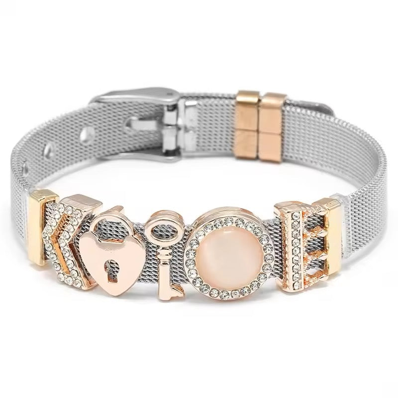 Ontdek de prachtige RVS mesh armband met DIY key lock kralen en gespsluiting – het perfecte sieraad voor vrouwen die houden van stijlvolle, gepersonaliseerde accessoires.