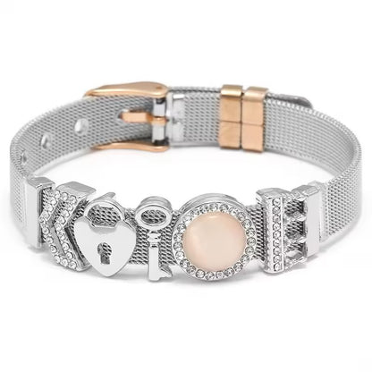 Luxe RVS Mesh Armbanden met DIY Key Lock Kralen en Gesp Keeper – Perfect Sieraad Cadeau voor Vrouwen