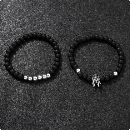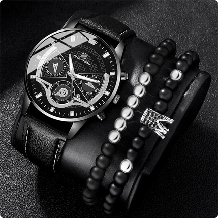 Deze set bestaat uit een minimalistisch herenhorloge en twee stijlvolle kralenarmbanden, perfect voor die subtiele touch van stijl.