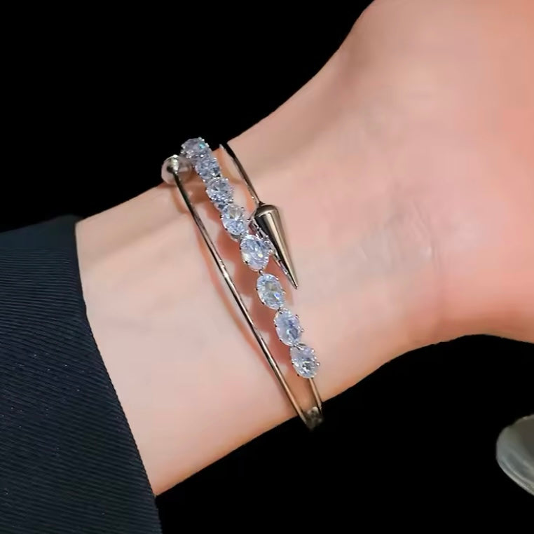 Deze multi layer zirkoon open armband is ontworpen voor vrouwen die houden van lichte luxe en tijdloze elegantie.
