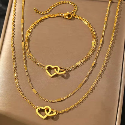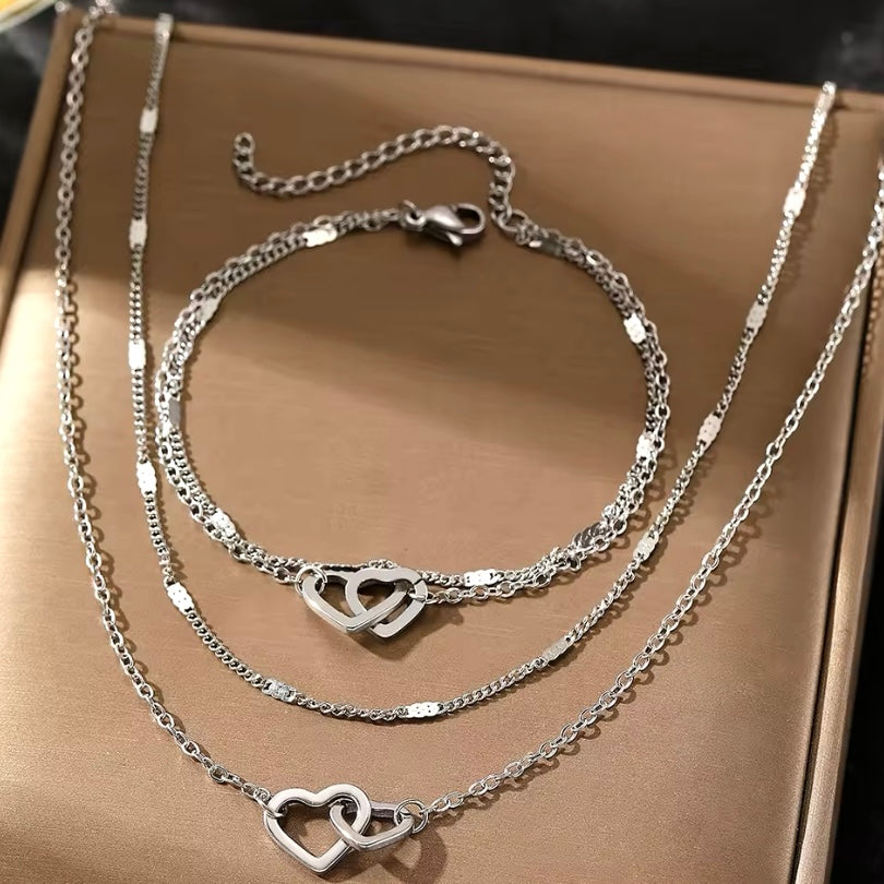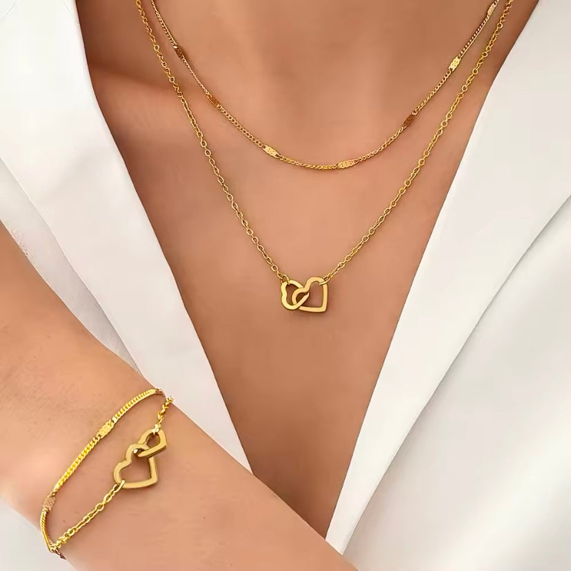 Roestvrij Stalen Sieradensets voor Dames - High-End Design Liefdearmband & Dubbele Ketting Set | gratis verzending
