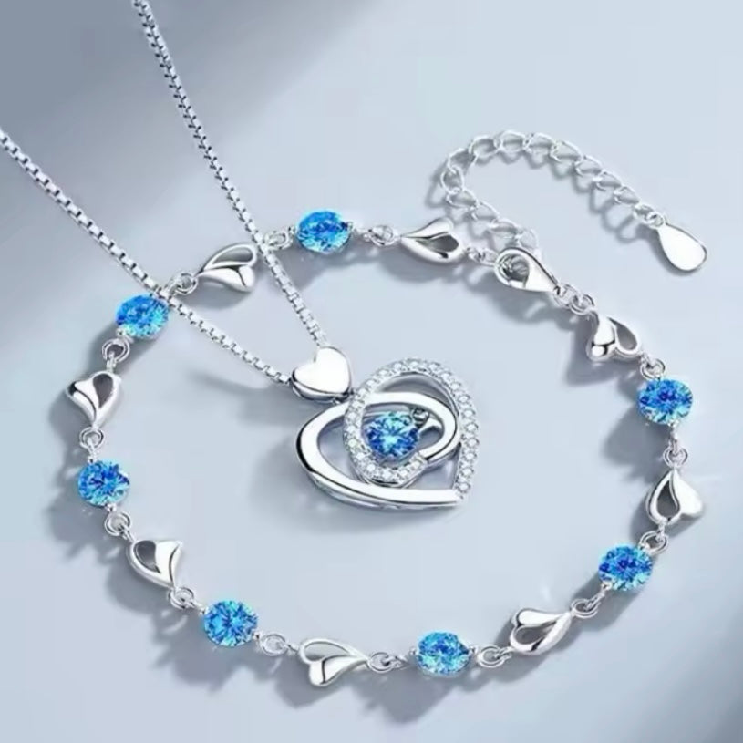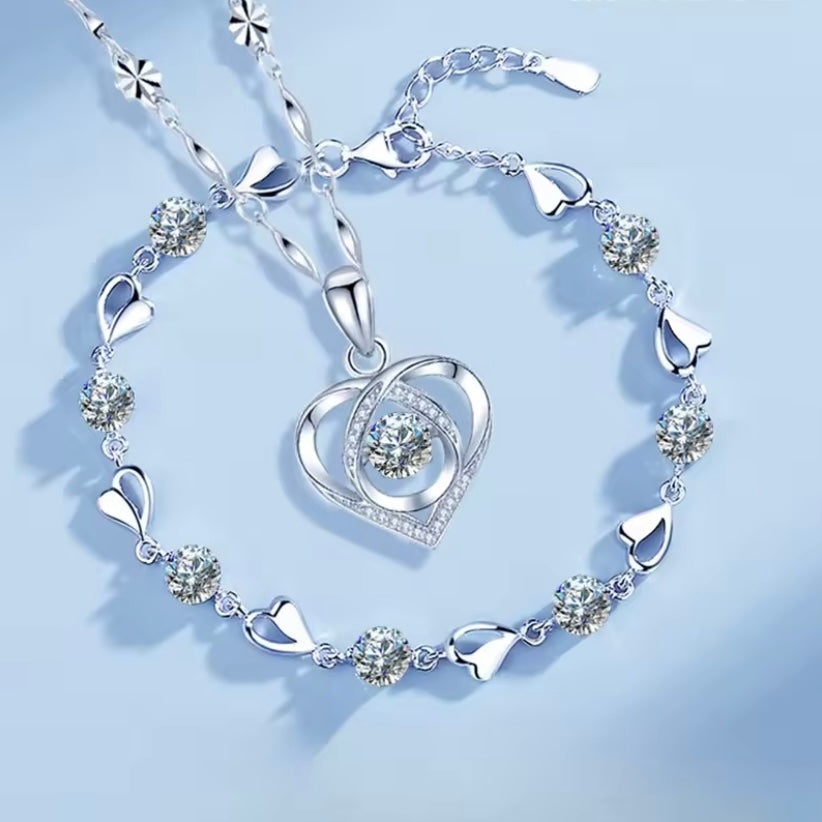 Laat je betoveren door de tijdloze schoonheid van deze S925 zilveren Oceaan Hart Ketting en Armbanden Set.